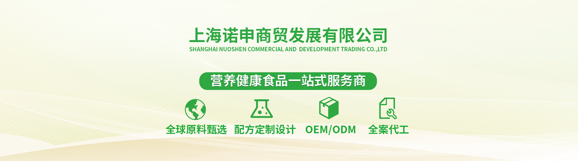 Shanghai Nuoshen Commercial Development Co., Ltd. is invested by Shanghai Nuoshen Food Trading Co., Ltd. Nuoshen positions as a localized goods service provider for international natural food ingredients, focusing on providing internationaly safe, nutritional and healthy food ingredients for Chinas food industry, and aiming at reducing the gap between Chinas and the worlds food industry.
